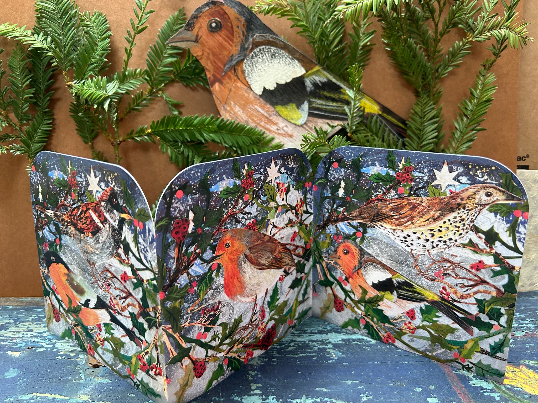 A beautifully illustrated Winter Bird fold out concertina greeting card.